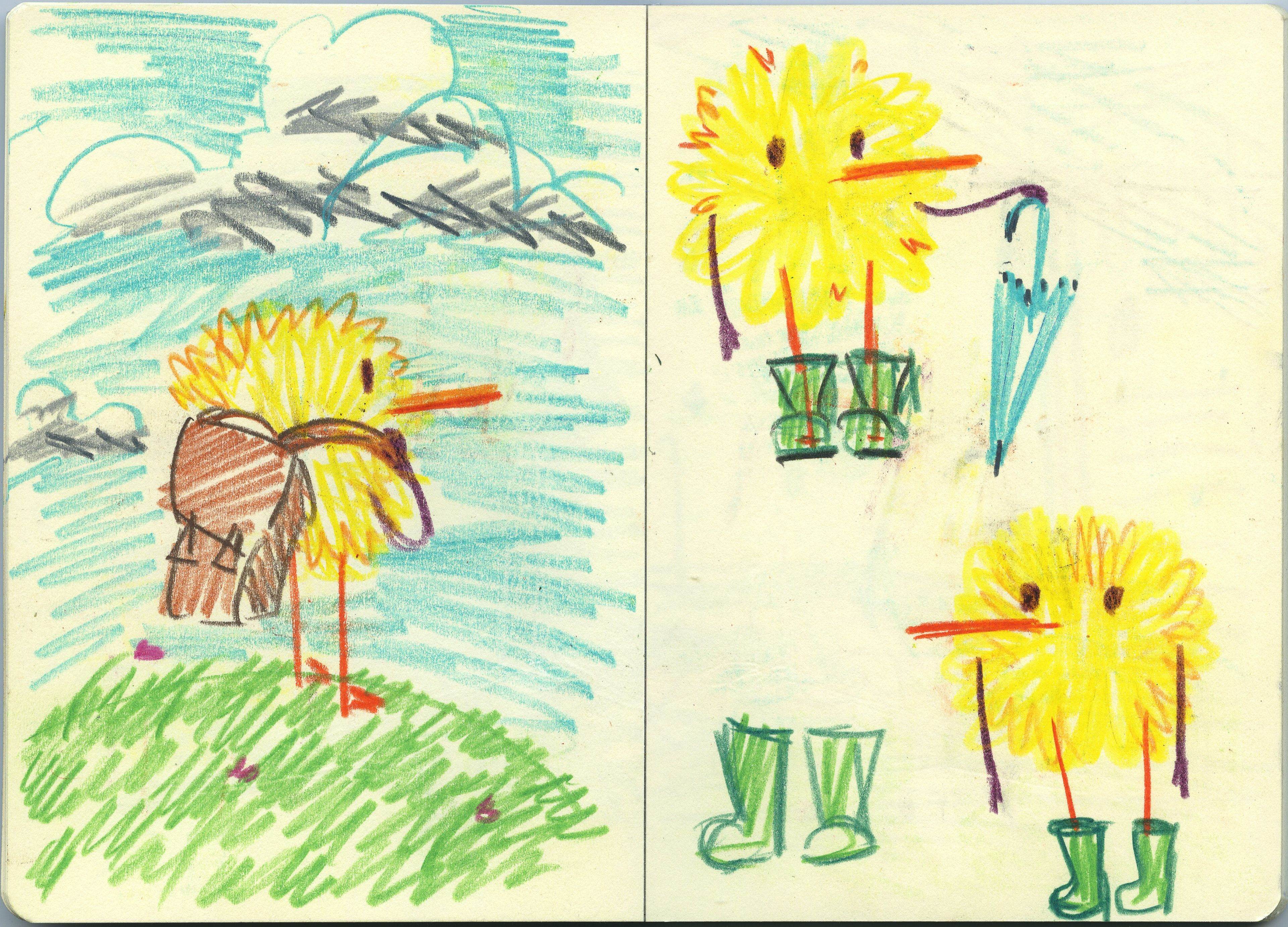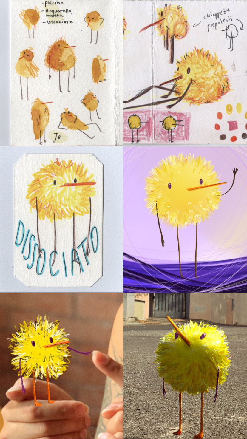 “Les Quasi Oiseaux” è il racconto di un pulcino ormai cresciuto, senza ali, che parte in un viaggio alla ricerca di qualcuno simile a lui. Incontra creature magiche, uccelli di ogni tipo e luoghi straordinari e ordinari. Un diario di bordo